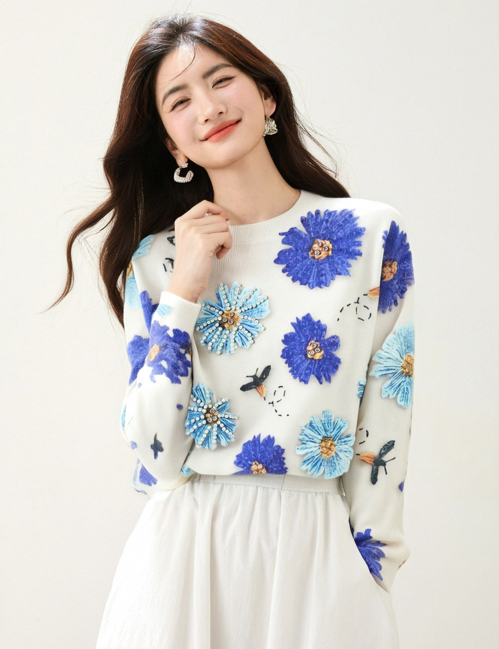 3D rose detailed maxi dress