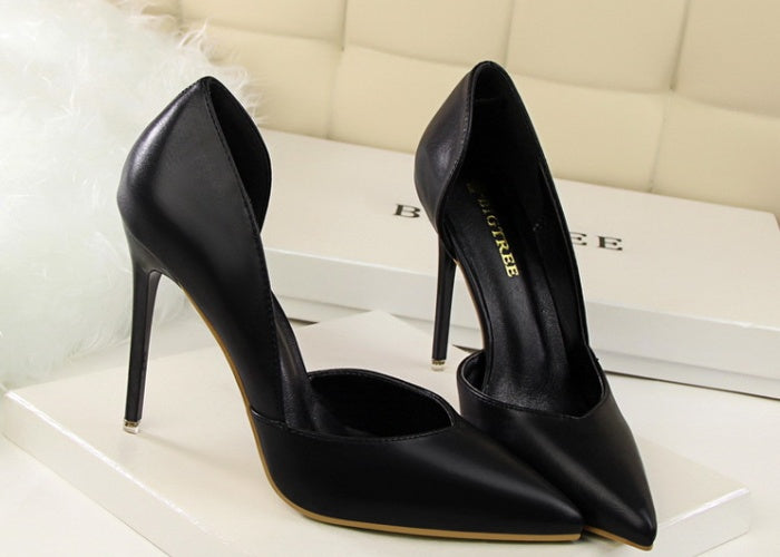 Classic Louboutin Red Bottom Glittery Side Hollow Heels- Superior